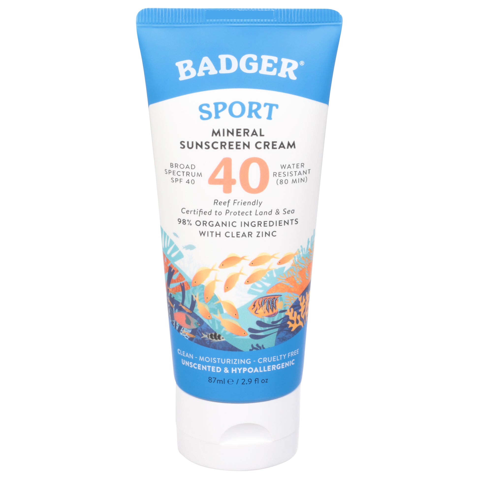 Badger Broad Spectrum SPF 40 Sport Mineral Sunscreen Cream 2.9 fl oz