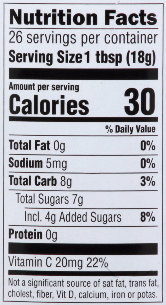 30 calories per serving. 4 g added sugars per serving. USDA Organic. Certified Organic by QAI. Naturally gluten free. 33% less sugar than a preserve. Non GMO Project verified. nongmoproject.org. Perfectly sweetened with Fair Trade cane sugar. 75% fruit content. Varietal fruit chosen with care. croftersorganic.com. Product of Canada.