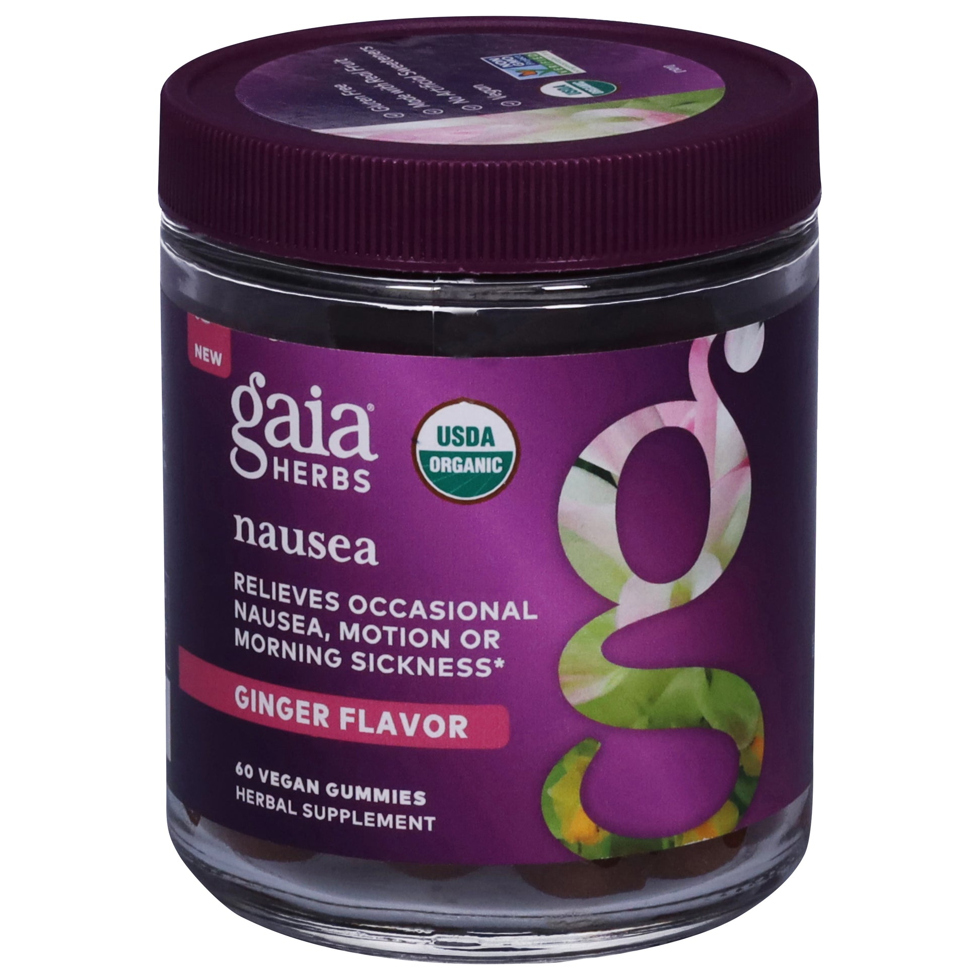 Gaia Herbs Ginger Flavor Nausea 60 Vegan Gummies