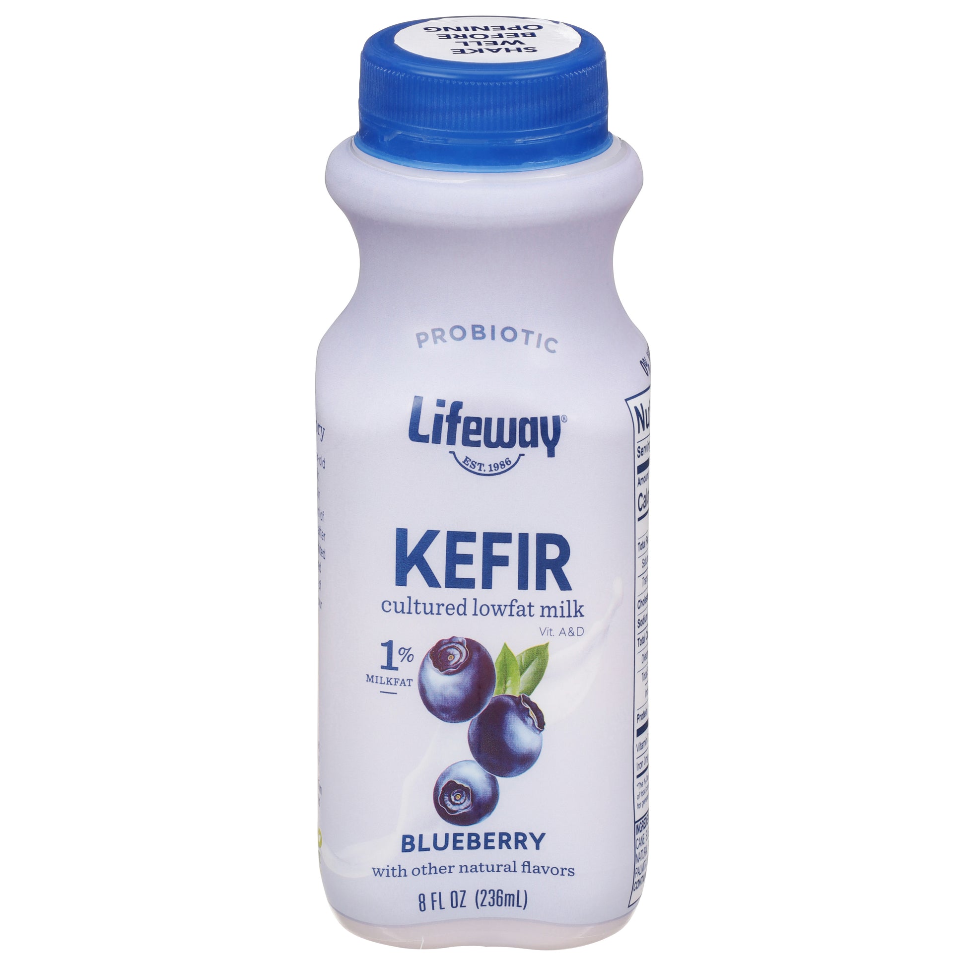 Est. 1986. Vit. A & D. 25-30 Billion CFU (at time of manufacture). The Lifeway Story. In this bottle lives a 2000-year-old ancient healing recipe for kefir. Passed down for generations in Eastern Europe purely by word of mouth, it gained global fame after our family immigrated to the United States in 1976, where we shared the secret the first batches of - Lifeway Kefir were crafted in our basement in Chicago in 1986. And here we are. We love your guts, The Smolyansky Family. We use milk that has not been treated with artificial hormones or antibiotics (No significant difference has been shown between milk derived from rBST treated cows and non-rBST treated cows). We use bottles that are sustainably made with plant-based materials and are 100% recyclable. I'm green plastic.