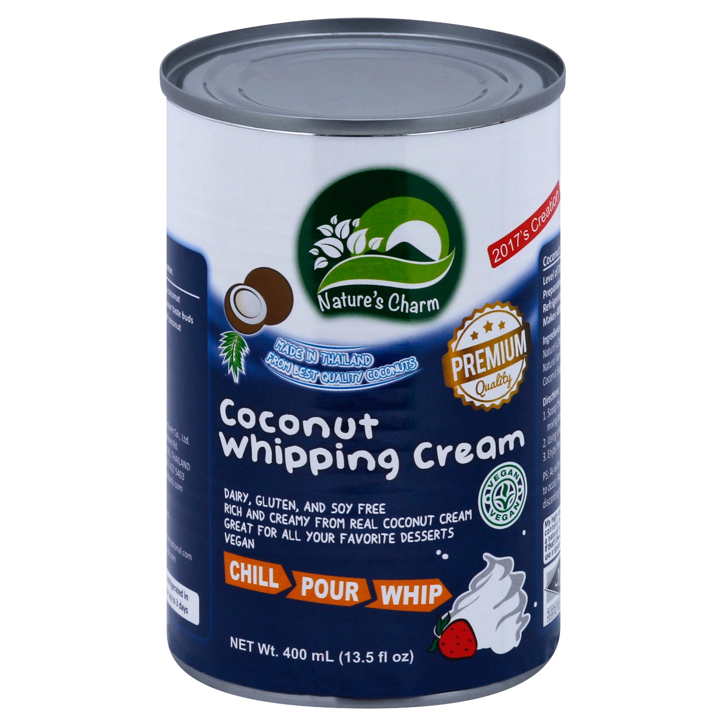Makes 400 g of delicious Coconut Whipping Cream. Vegan. Dairy, gluten, and soy free rich and creamy from real coconut cream great for all your favorite desserts vegan. Premium quality. 2017's Creation. Chill pour whip. Nature's Charm the Vegan Food Creator: The most rich and creamy coconut whipping cream to spoil your taste buds; Made from healthy fats of coconut; No palm oil; No vegetable oil; Cholesterol free; Trans fat free; Compassionate food. Tel: (662) 422 5406. www.familyfoodsinternational.com. Product of Thailand. Made in Thailand from best quality coconuts.