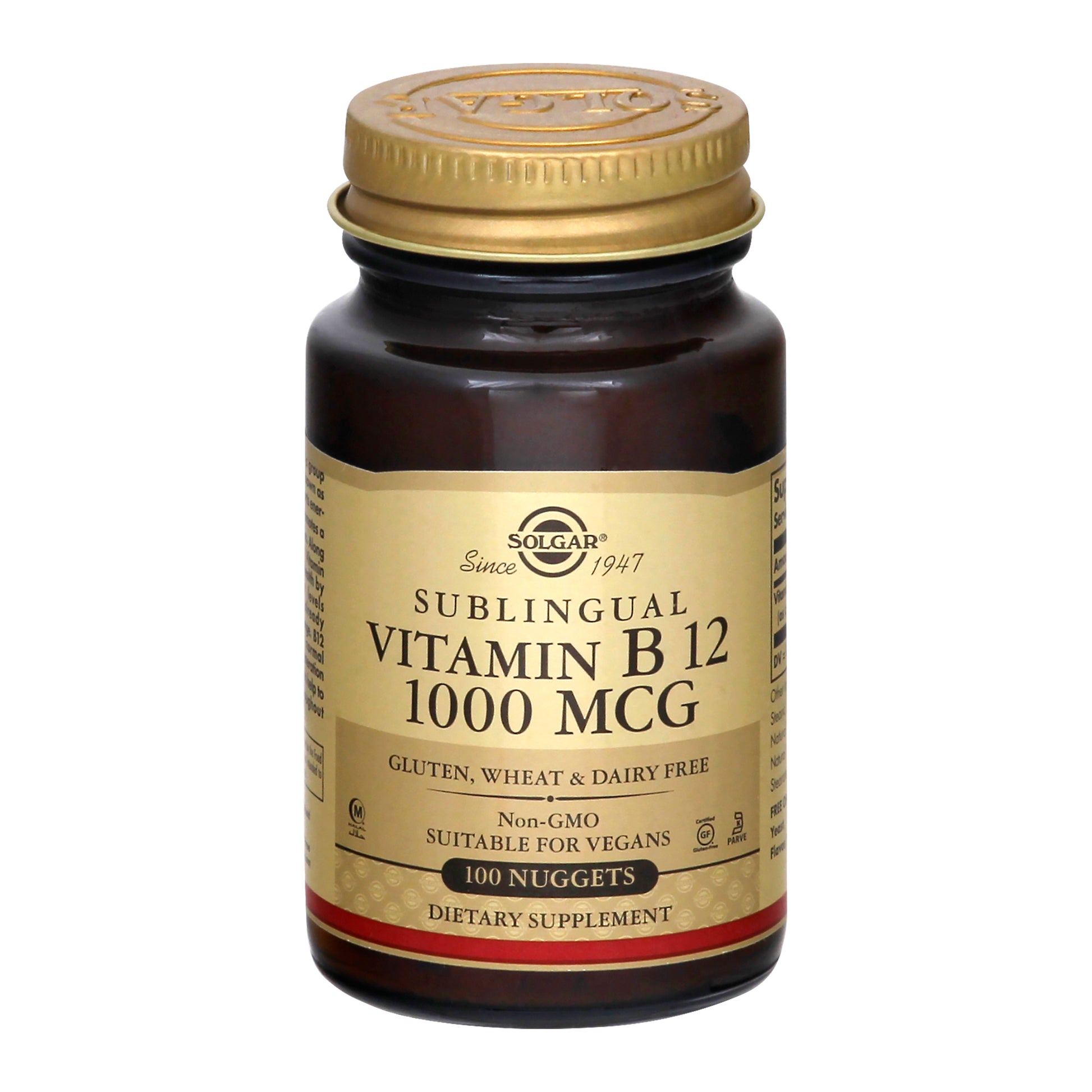 Dietary Supplement. Certified gluten-free. Gluten, wheat & dairy free. Suitable for vegans. Free of: Gluten, wheat, dairy, soy, yeast, sugar, sodium, artificial flavor, preservatives and color. Non-GMO. Since 1947. Vitamin B12 is part of a group of essential nutrients known as the B Complex. It supports energy metabolism and promotes a healthy nervous system. Along with Folic Acid and Vitamin B6, it supports heart health by promoting healthy levels of homocysteine already within a normal range. B12 is required for the normal development and regeneration of red blood cells, which help to deliver oxygen throughout the body. Solgar's KOF-K certification no. K-1250. www.solgar.com. For more information, call toll-free 1-877-Solgar 4, www.solgar.com. (These statements have not been evaluated by the Food and Drug Administration. This product is not intended to diagnose, treat, or cure any disease.)