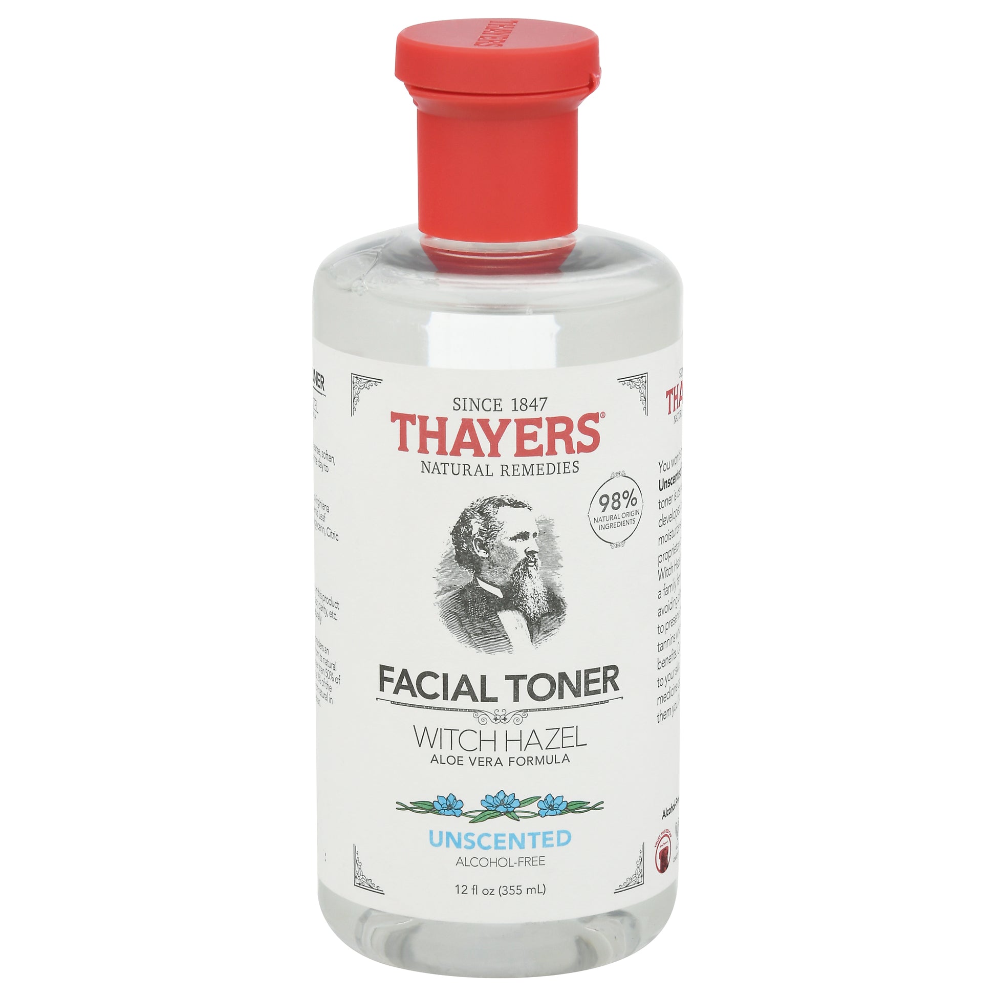 Since 1847. Natural remedies. Aloe vera formula. Vegan Formula: No animal derived ingredients. The carefully selected, naturally sourced ingredients in this product have undergone limited processing. Variations in color, clarity, etc. can be expected from lot to lot due to our use of naturally occurring ingredients. What are natural origin ingredients? Thayers only considers an ingredient to be of natural origin of it is unchanged from its natural state or has undergone processing, but retains greater than 50% of its molecular structure from its original natural source. 2% of the ingredients in Thayers Unscented Facial Toner are not natural in origin in order to ensure its sensoriality and preservation. You won't smell it, but you'll surely feel Thayers Unscented Facial Toner. This pH balanced, gentle toner is derived from a time-honored formula, developed by Thayers to cleanse, tone, and moisturize skin. Formulated with our unique, proprietary blend of Aloe Vera and non-distilled Witch Hazel that is grown exclusively for Thayers on a family farm in Fairfield County, Connecticut. By avoiding distillation of our Witch Hazel, we're able to preserve the naturally-occurring, beneficial tannins which are known to offer antioxidant benefits. Our toner formula imparts a natural glow to your skin. Thayers elixirs have been a fixture in medicine cabinets for generations - once you use them you'll know why. Paraben free. Phthalate free. Trust the red cap. - Henry Thayer. Md. M Witch hazel locally grown in Connecticut. Dermatologist tested for safety. Cruelty free.